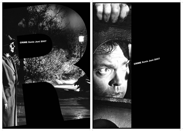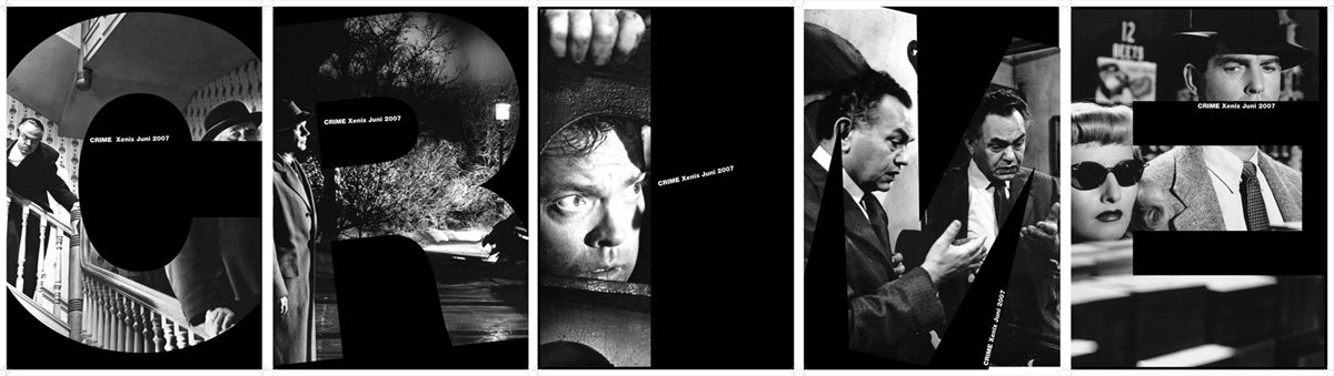 Ausgehend von der Erfahrung dass solche Plakate mehrfach nebeneinander aufgekleistert werden entstand der Gedanke eine 5er Reihe aus den Buchstaben C, R, I, M & E zu erschaffen.