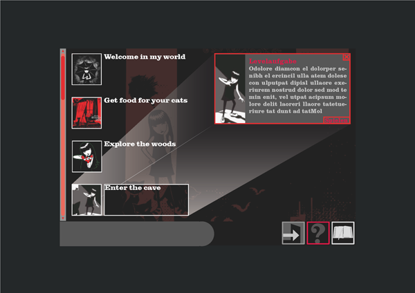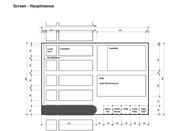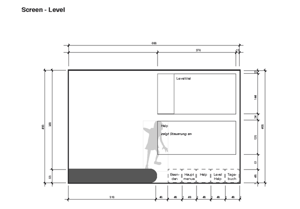 Diese Arbeit beinhaltet nicht das Game selber sondern lediglich die Steuerung, Screens, Icons, Typografie, Menueführung und Usability. Erster Knackpunkt war die Erstellung der groben Map des Games - welche Option wird dem User an welcher Stelle aufgezeigt, wie muss er durch die Menuebenen navigieren können. Welche Buttons sind dafür nötig und wie wird gewährleistet dass er stehts zum Ausgangspunkt zurückkehren kann.