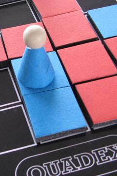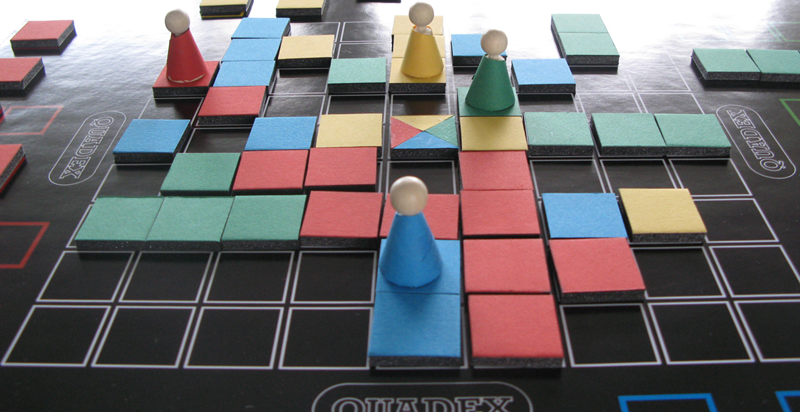 Das Spielziel lautet: erreiche mit der Figur Deiner Farbe das Ziel. Das Plättchen befindet sich zu Beginn des Spiels in der Mitte des Spielfeldes. Alle Spieler haben eine beschränkte Anzahl an "Stäbchen" welche wiederum in einzelne Quadrate aufgeteilt sind. So verfügen die Spieler über je zwei 3er-, 2er-, und 1er-Stäbchen. Reihum werden diese eingeschoben, so dass innert kurzer Zeit ein buntes Mosaik vorliegt. Es gilt sich einen Farbweg zu bahnen auf dem die eigene Figur sich Richtung Ziel bewegen soll - aber Achtung alles ist in Bewegung und das Ziel ist schneller weg als einem lieb ist.